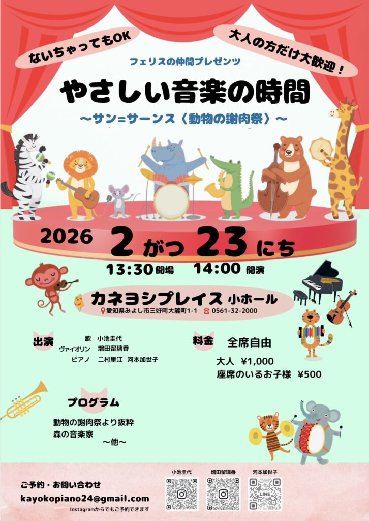 赤ちゃん、お子さま向けに音楽を楽しむ「やさしい音楽の時間」~サン=サーンス(動物の謝肉祭)~を行います。大人だけの参加もOK!